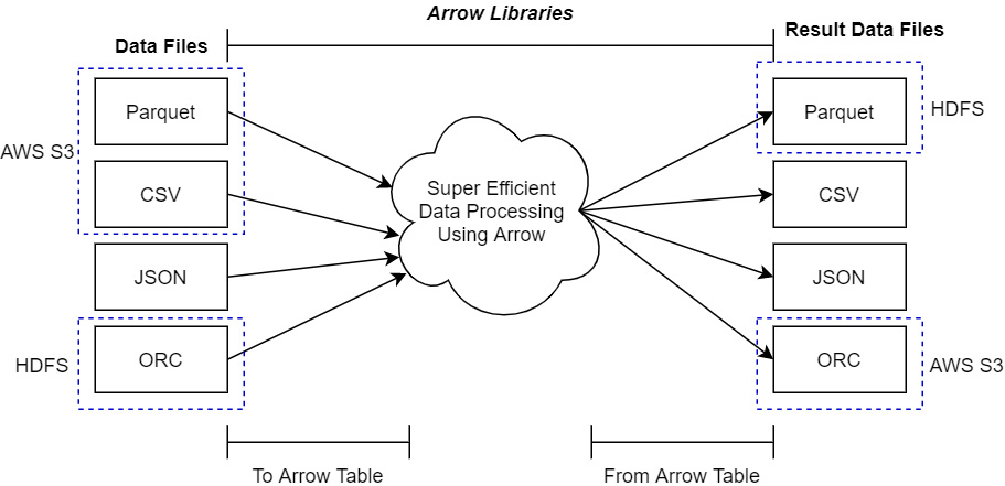 Apache Arrow is a development platform for in-memory analytics. It contains a set of technologies that enable big data systems to process and move data fast. It specifies a standardized language-independent columnar memory format for flat and hierarchical data, organized for efficient analytic operations on modern hardware.