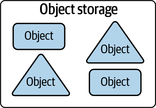 The term object storage is somewhat confusing because object has several meanings in computer science. In this context, we’re talking about a specialized file-like construct. It could be any type of file: TXT, CSV, JSON, images, videos, audio, or pretty much any type of file.