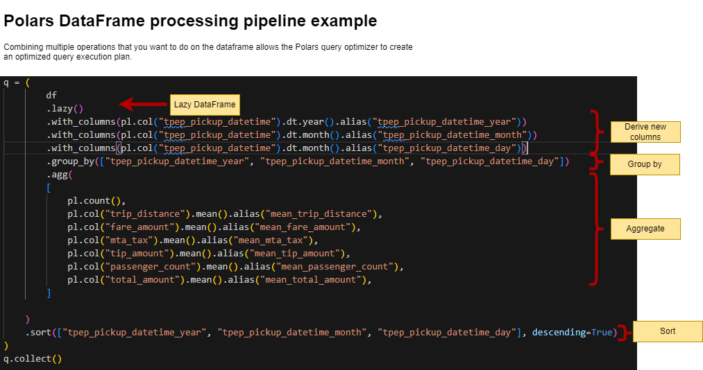 Familiar API for users of Pandas: there are differences in syntax polars != pandas but it is still a Dataframe API making it straightforward to perform common operations such as filtering, aggregating, and joining data. See migrating from Pandas